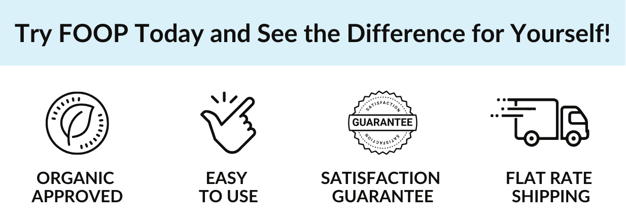 FOOP products are approved for organic use by both the Organic Materials Review Institute (OMRI) and the California Department of Food and Agriculture (CDFA), ensuring they do not contain harmful chemicals.